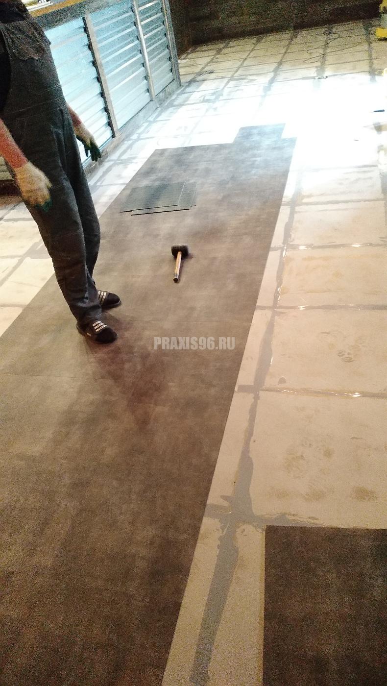 Кафе “Burgman” пвх плитка “Tarkett Lounge Concrete” уложена по керамограниту.